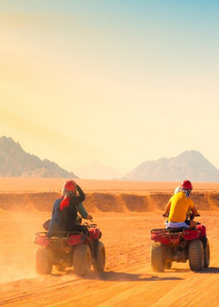 Dahab’dan çıkarken, Sina Çölü’nde akşam quad bike macerasına çıkın, vadileri ve sahil boyunca ilerleyin. Güneş batarken, tepelerde bir Beduin çayı molası verin ve ardından mavi...
